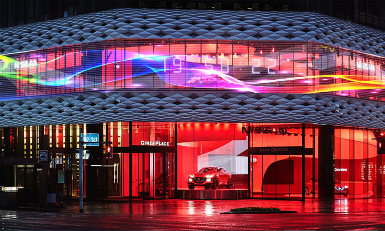 The store’s innovative 2024 LED transparent showcase window features FutureXLED™️’s P3 fine-pitch...