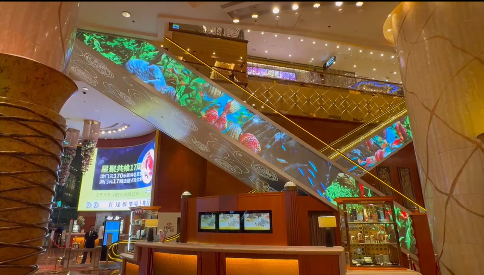 The StarWorld Hotel in Macau deployed FutureXLED™️’s LED crystal film display (15m width, 1.2mm ultra-thin) for its immersive art lobby in 2024, featuring 8K dynamic visuals integrating Macau landmarks such as ocean waves and the Ruins of St. Paul’s; the patented optical film technology enables 120° wide-angle imaging with over 1,500 daily interactions, driving a 32% increase in VIP occupancy rates and earning the “Asia Pacific Smart Hotel Innovation Gold Award.”