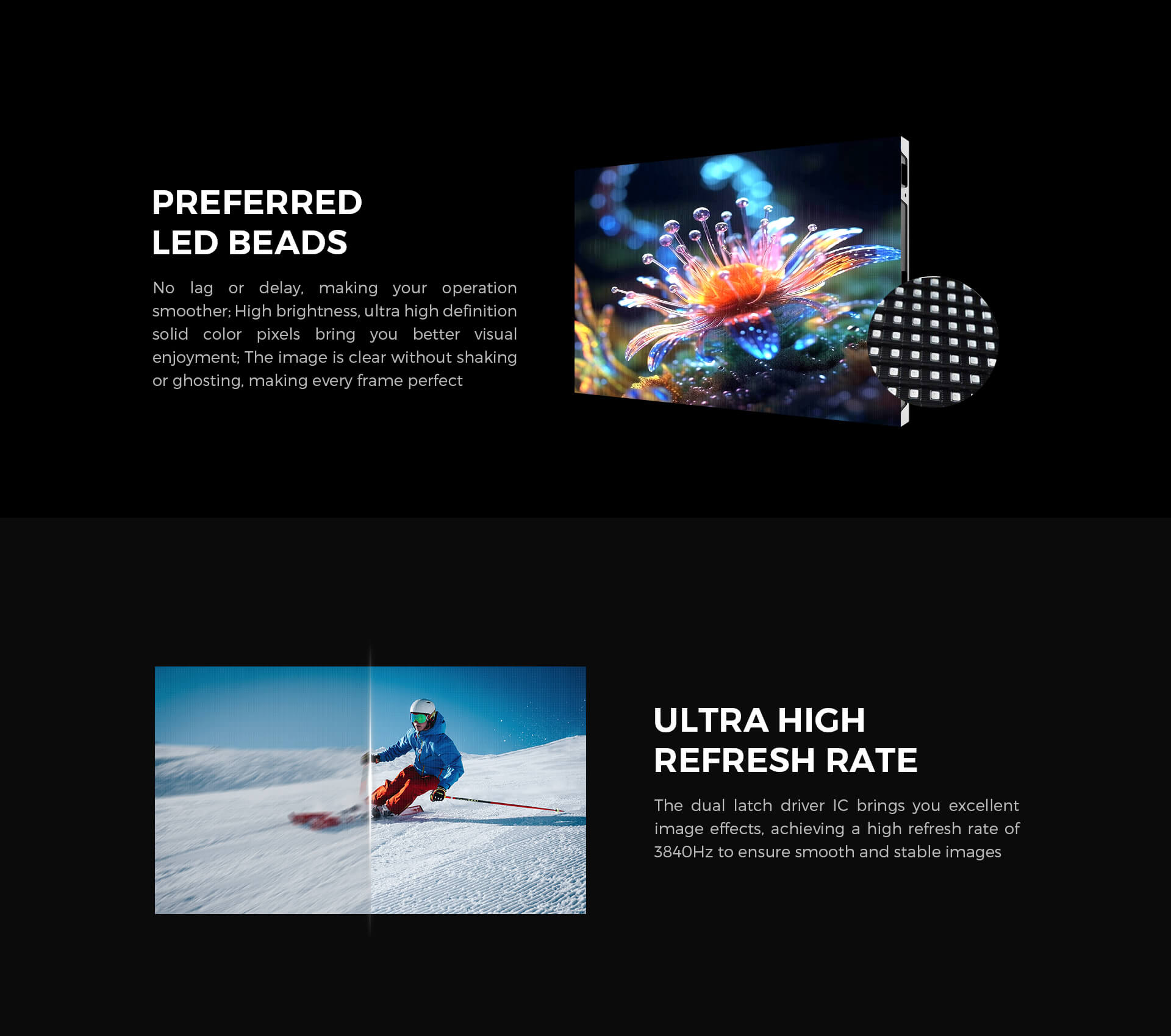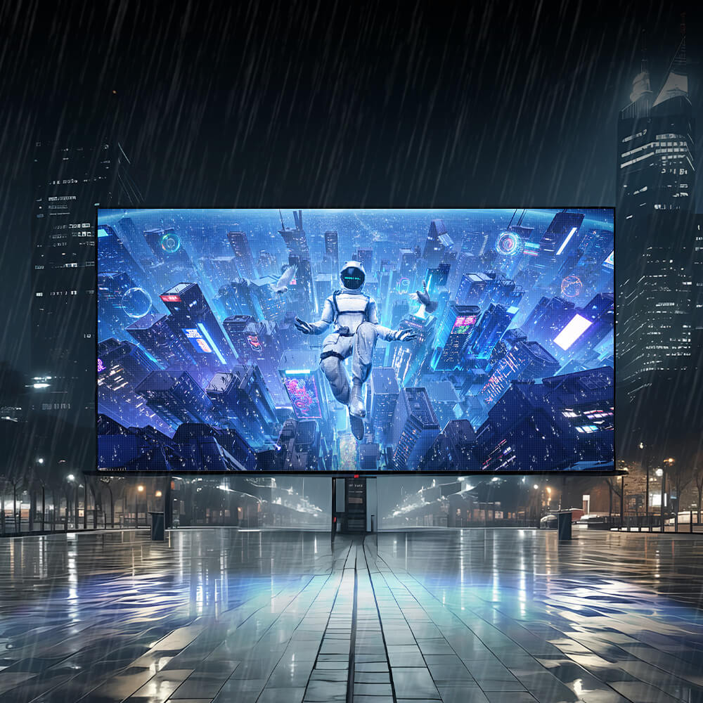FutureXLED™️ Outdoor COB Screen delivers IP65-rated environmental protection with 5,000+nits brightness and UV-resistant die-cast aluminum enclosures—engineered for seamless large-scale displays in advertising, stadiums, and architectural façades under extreme weather conditions.